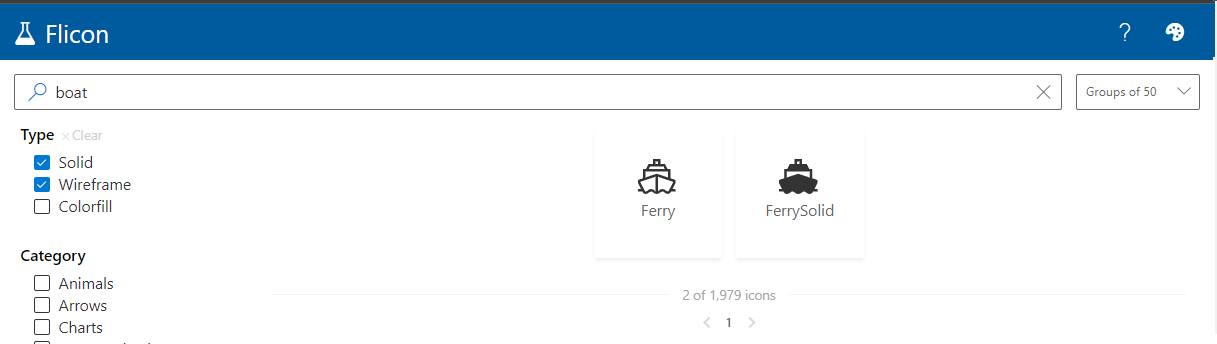 At first glance, that looks pretty good. But if we turn on the names of the icons (I’ll show you how below,) we quickly realize that the name needed to find the icon in the Fluent UI website is not boat!