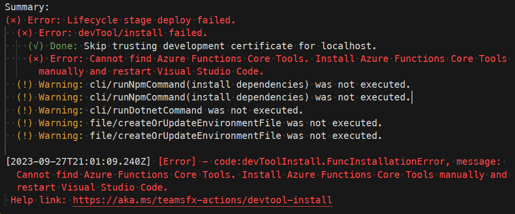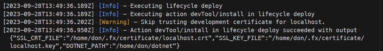 I could not find any references to developers that have run into these issues. Digging into the TeamsFx project, I even found where the Linux certificate deployment is listed as TODO. 😲 I will update this post as I as needed if the process changes. I also hope to talk to the Teams Toolkit team to see how we can make this experience better, as I am not sure why the Azure Functions Core Tools and Dotnet can’t be automated. Stay tuned!!!